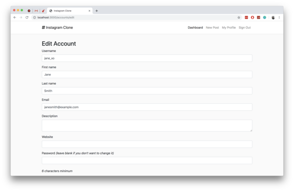 Allow users to create an account, upload photos, like and comment on photos, follower users and be followed and more.
